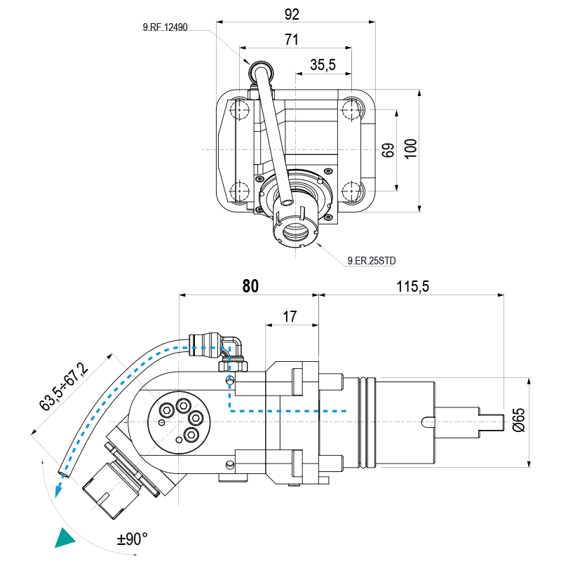 Kihajtás: ER25 - Ø1-16 : ER25 - Ø1-16