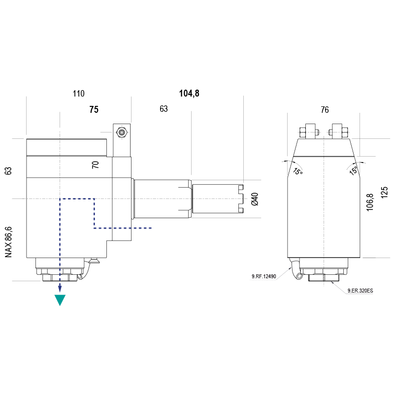 - Gépoldali csatlakozó típusa: VDI40 - L=104,8 - HAAS